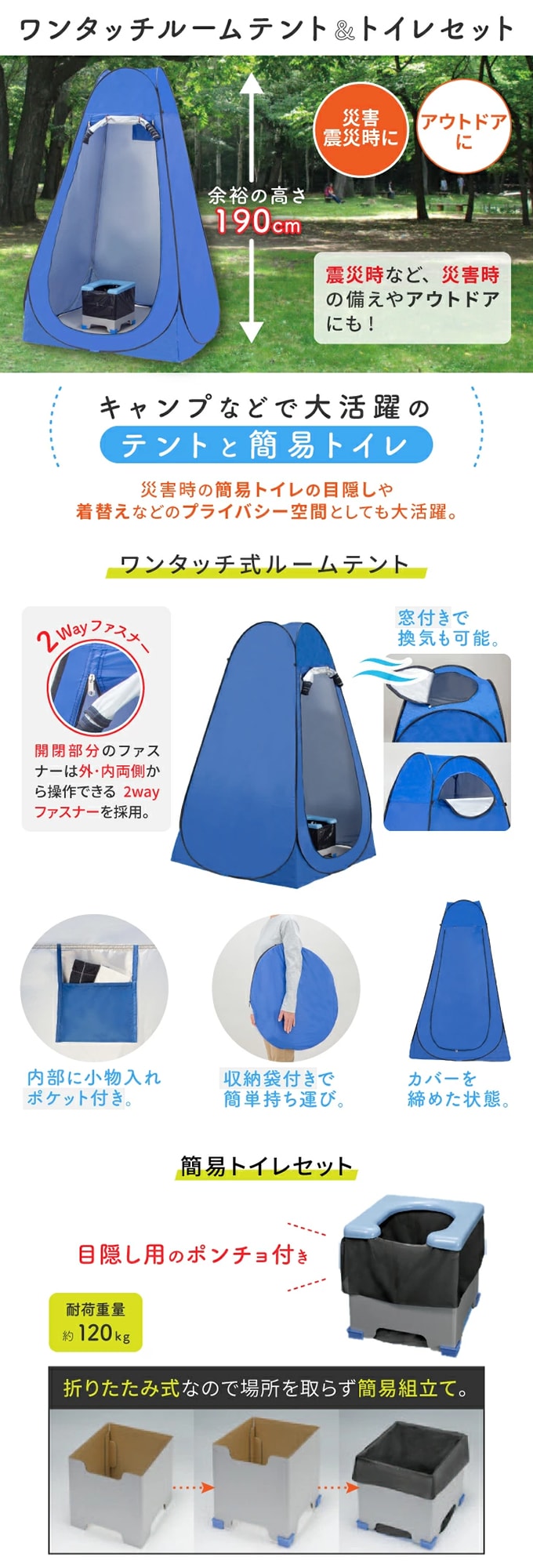ワンタッチルームテント&トイレセット | 災害時やアウトドアなどに役立つルームテント+簡易トイレセット
