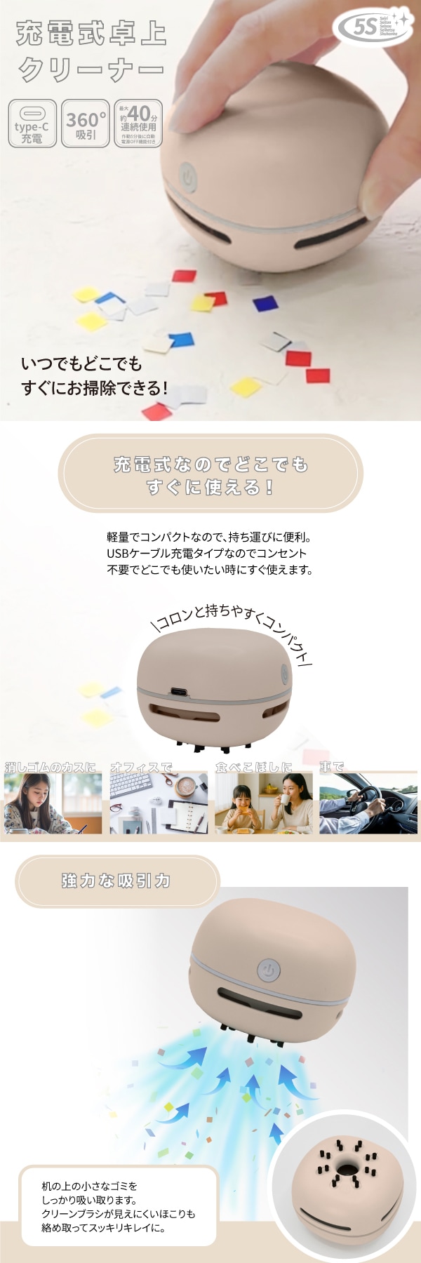 【ベージュ】卓上クリーナー | いつでもどこでもすぐにお掃除できる! 掃除が楽しくなる卓上クリーナー 掃除機