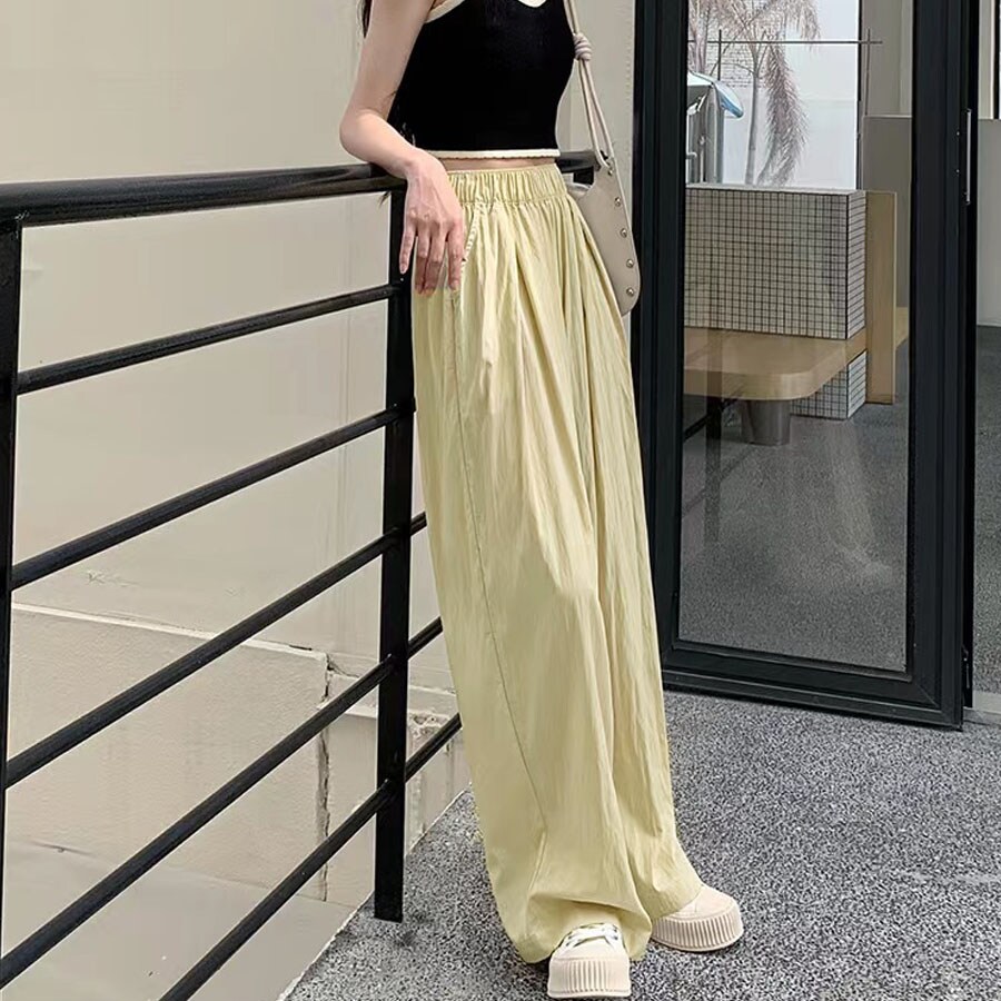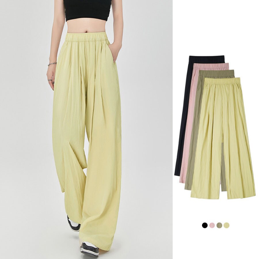 - 【ブラック】ウエストゴム ストレートサマーパンツ