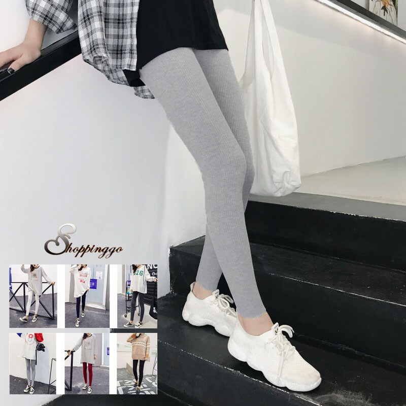 【ライトグレー】ウエストゴムシンプルレギンスパンツ