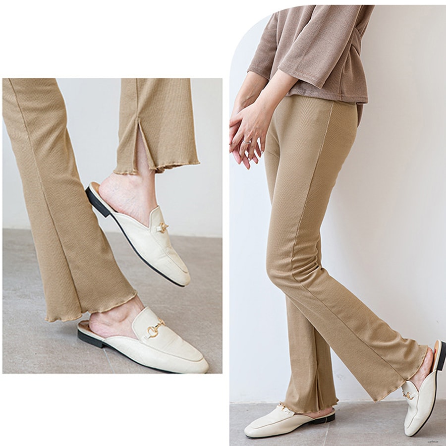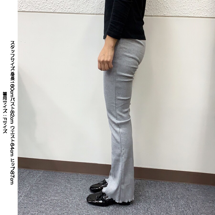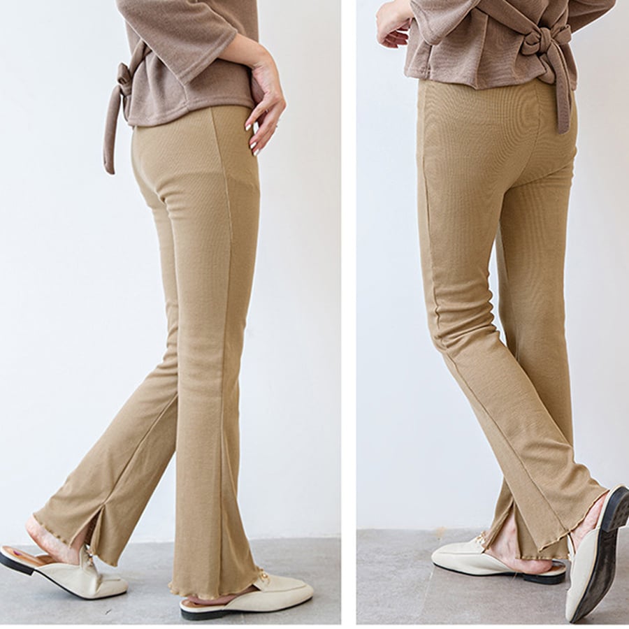 - 【ベージュ/フリルタイプ】 ウエストゴム フレアリブパンツ