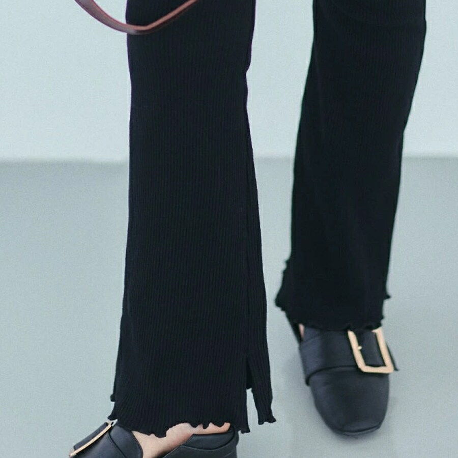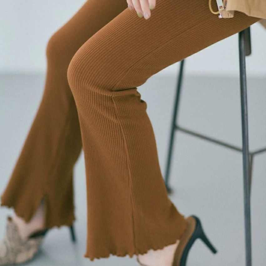 - 【キャメル/フリルタイプ】 ウエストゴム フレアリブパンツ