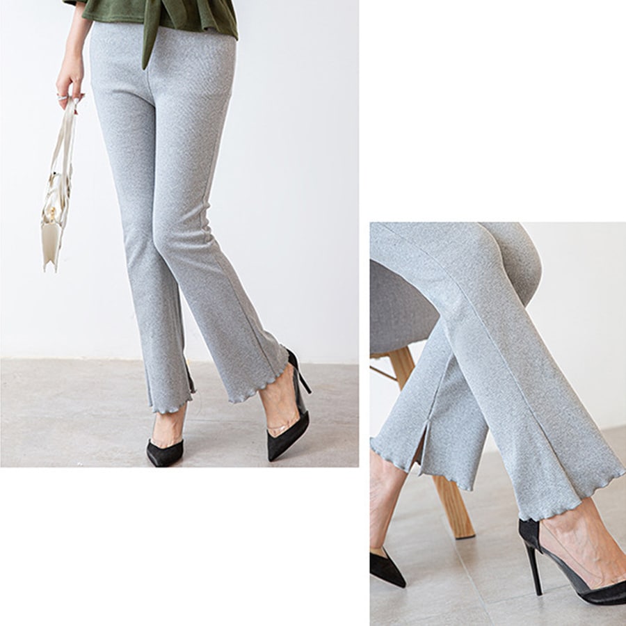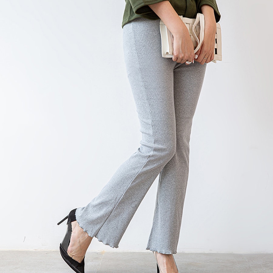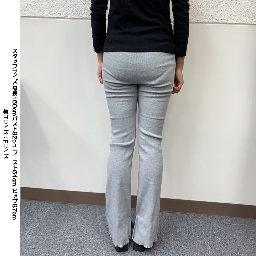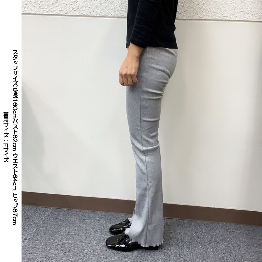 - 【ライトグレー/フリルタイプ】 ウエストゴム フレアリブパンツ