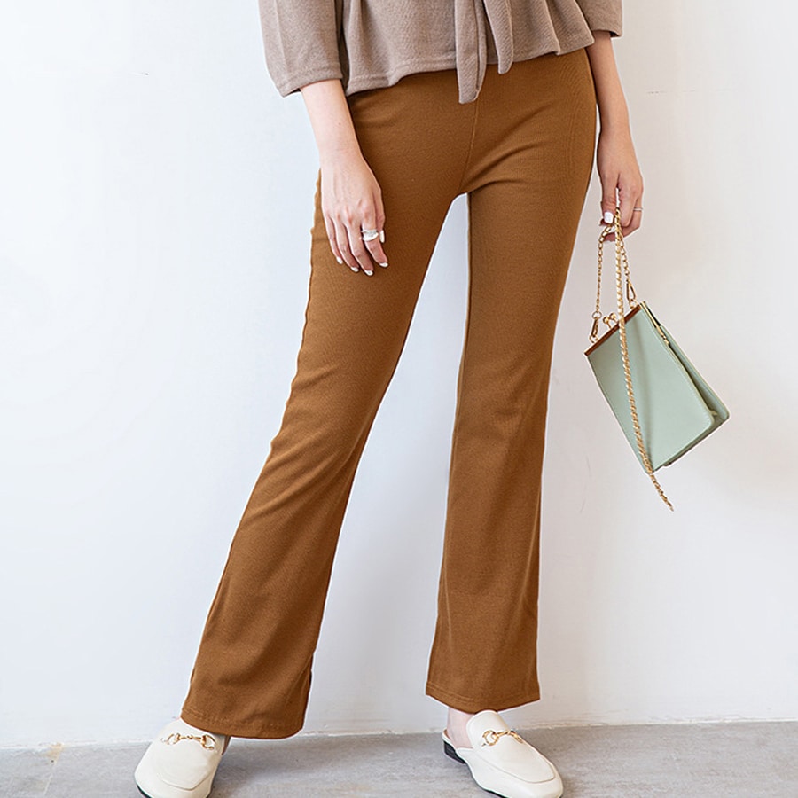 - 【キャメル/フラットタイプ】 ウエストゴム フレアリブパンツ
