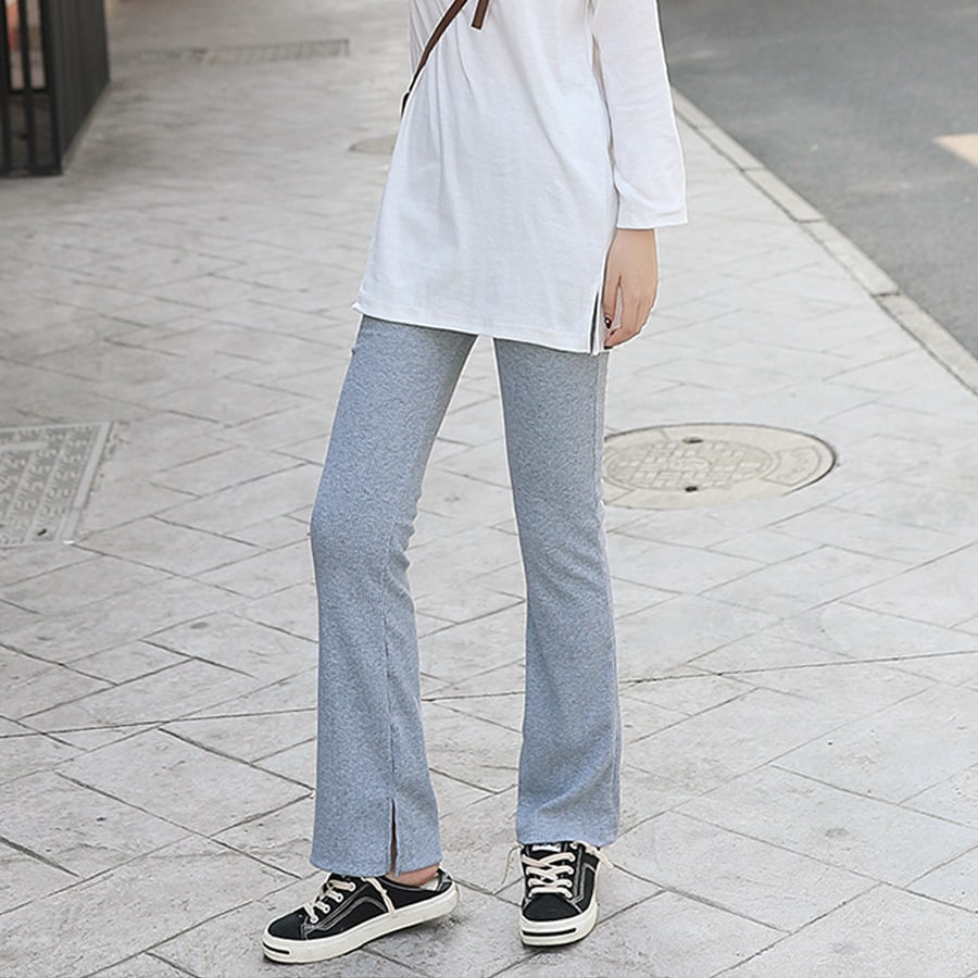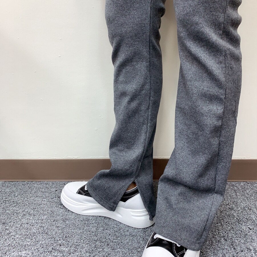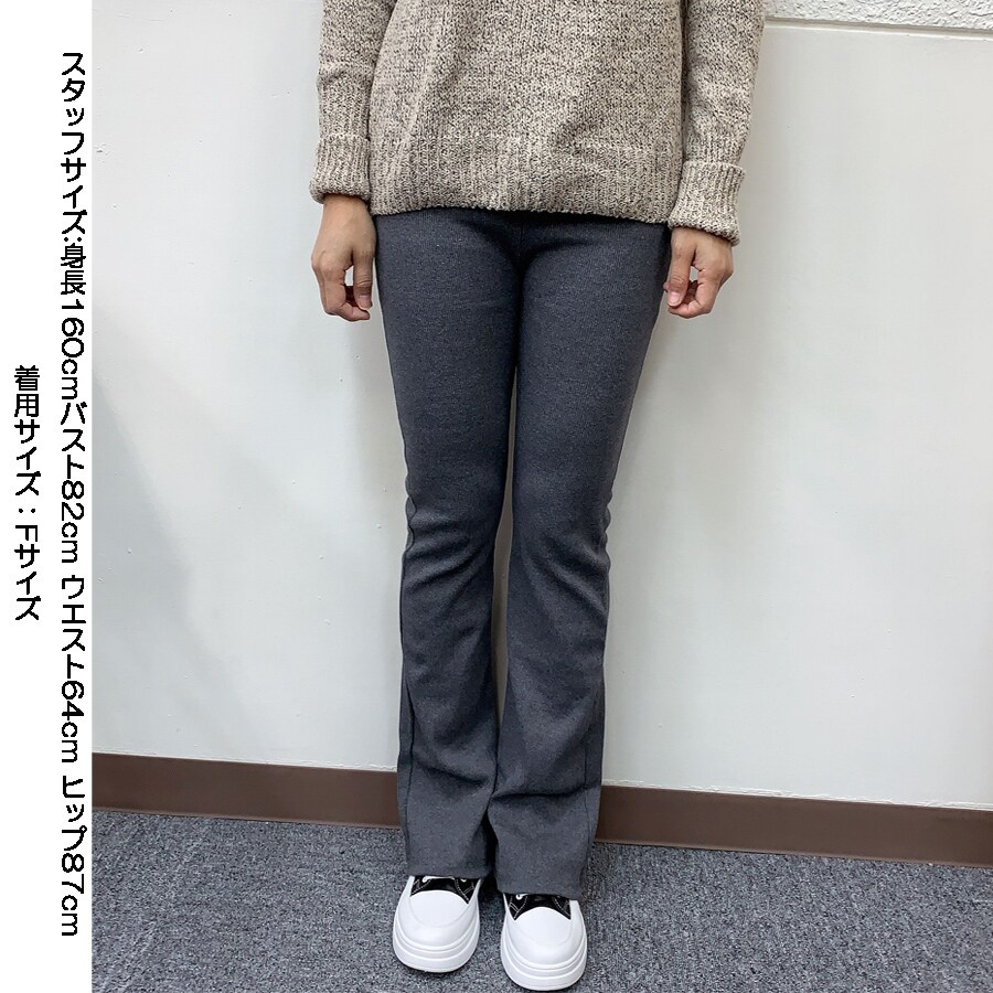- 【ライトグレー/フラットタイプ】 ウエストゴム フレアリブパンツ