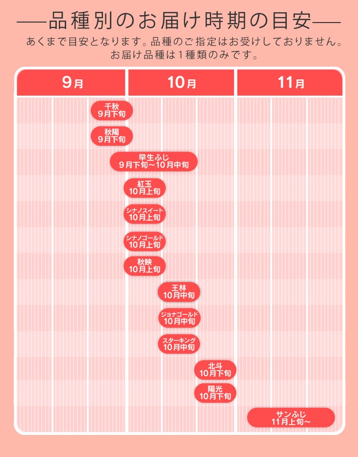 ※品種おまかせりんごは、仕入れ状況により旬のりんごをお届け致します。