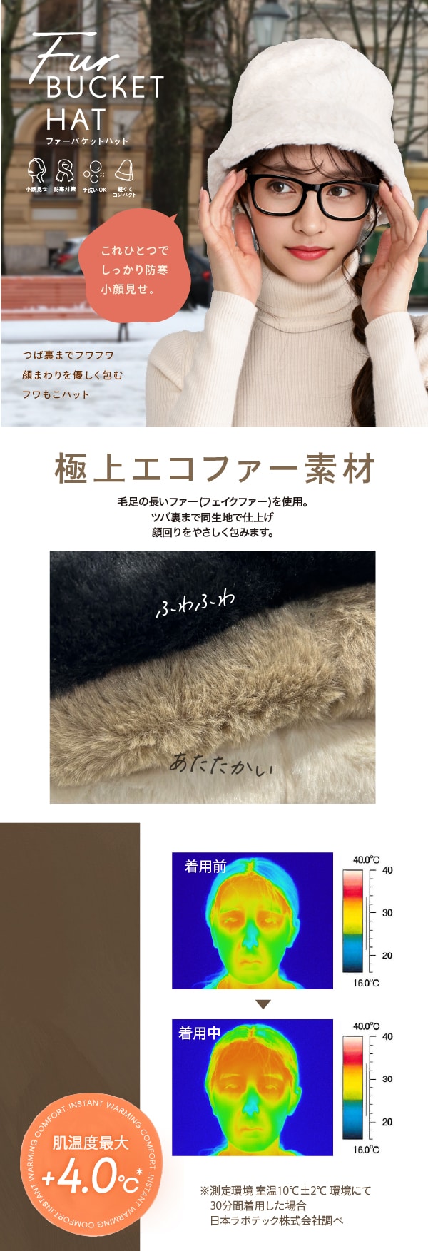 【アイボリー】ファーバケットハット | 肌温度+4.0℃!しっかり防寒、小顔見せおしゃれなバケットハット!