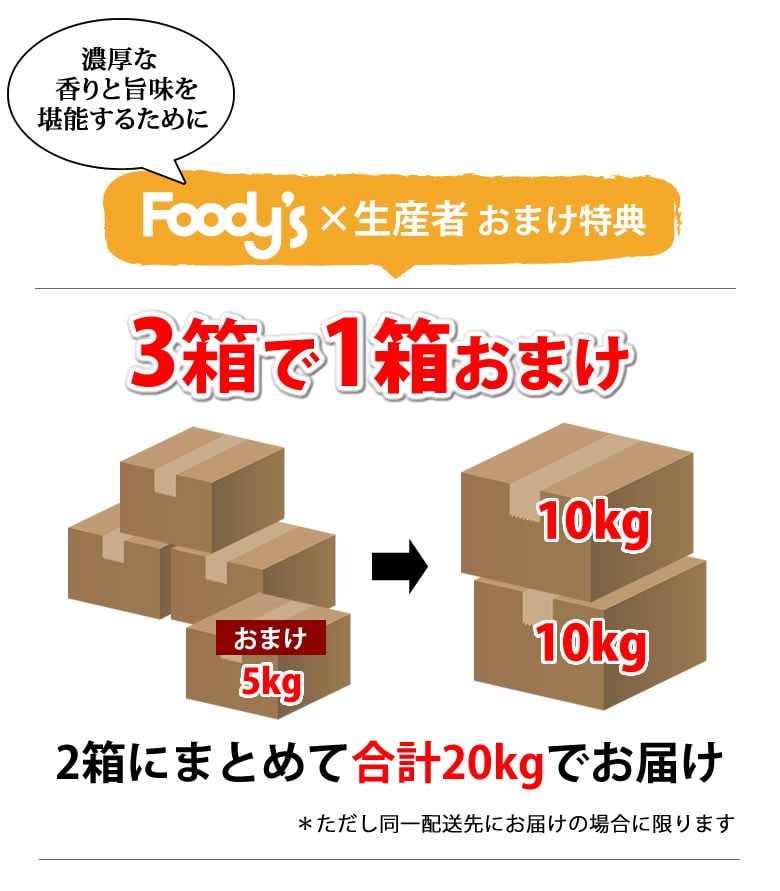 3箱で同時申し込みで1箱おまけ(計20kgを2箱にまとめてお届け)