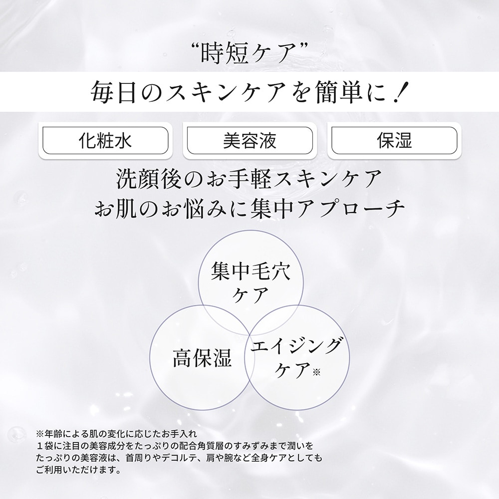 (3) 5から10分を目安にやさしくはがし、お肌に残った美容液は手のひらになじませてください。