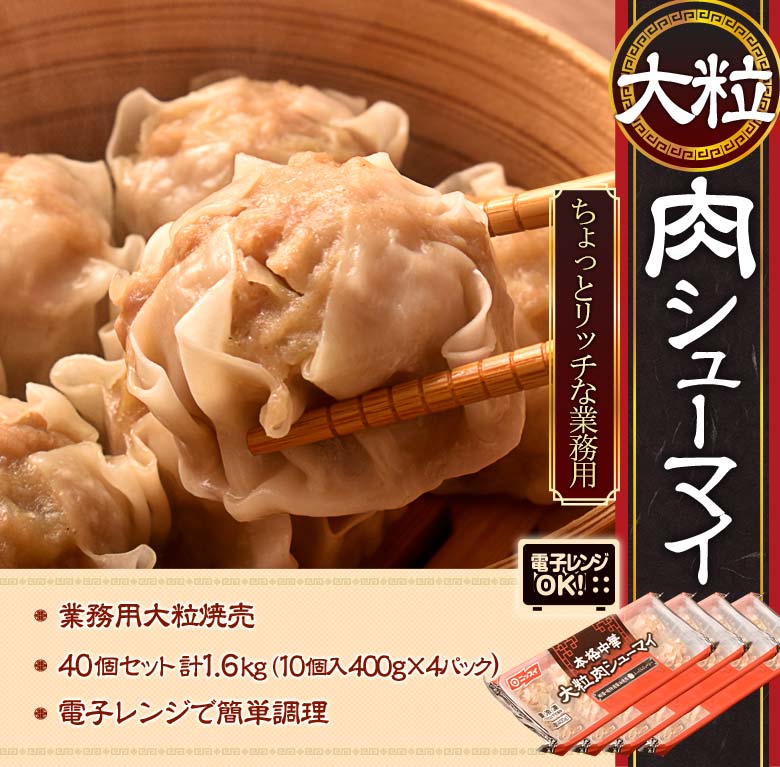 - 【計1.6kg(10個×4パック)】ニッスイの本格派焼売!1粒40gの大粒肉シューマイ