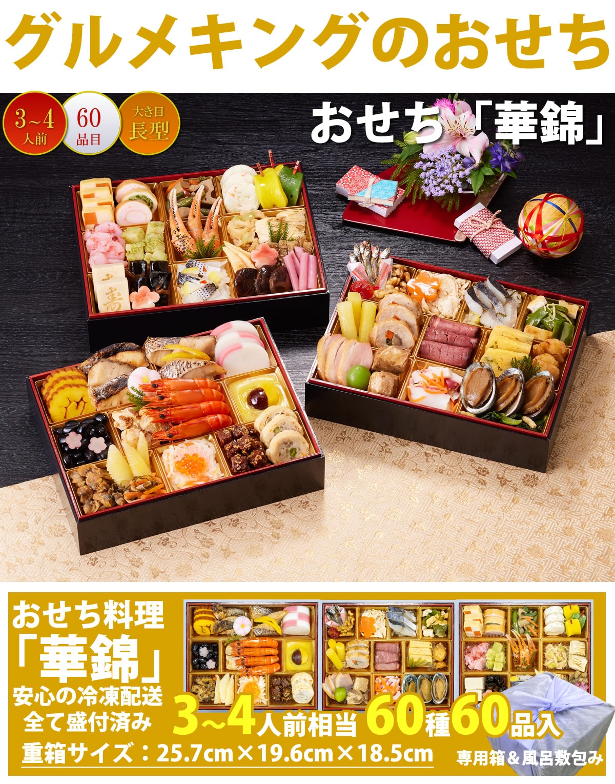 【12/29着】京都しょうざん和風おせち料理「華錦」三段重(3-4人前/60種60品) | 京都しょうざんリゾートのおせち