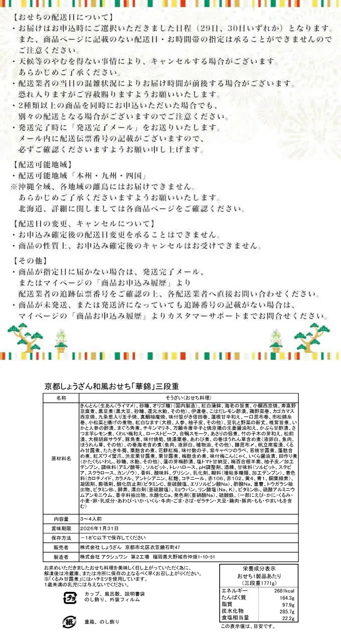 - 【12/30午前着】京都しょうざん和風おせち料理「華錦」三段...