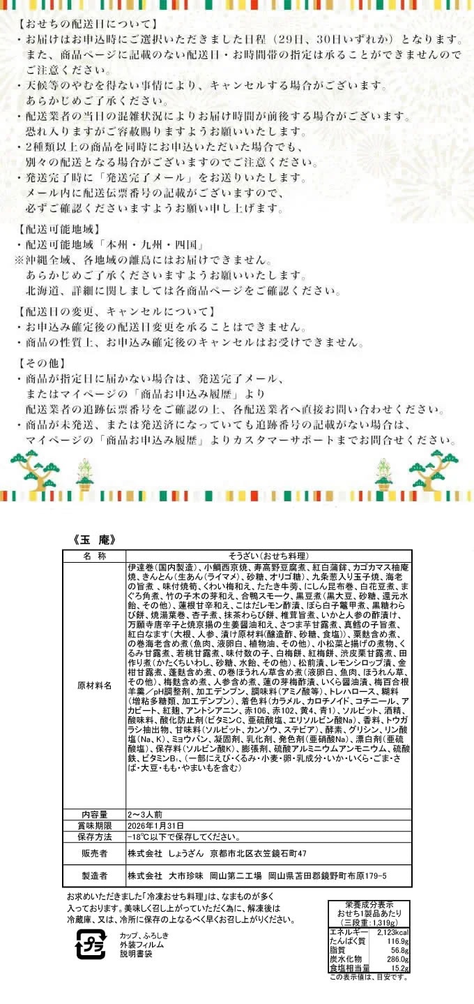 - 【12/30午前着】京都しょうざん和風おせち料理「玉庵」三段...