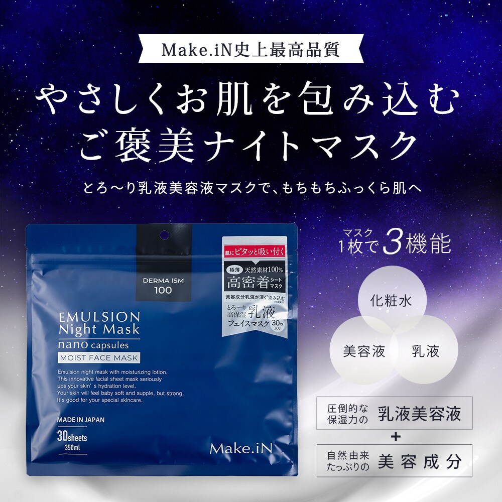 【30枚入】Make.iN エマルジョン(乳液)フェイスマスク | スキンケアは保湿から! お肌のシンデレラタイム、美容乳液で徹底保湿