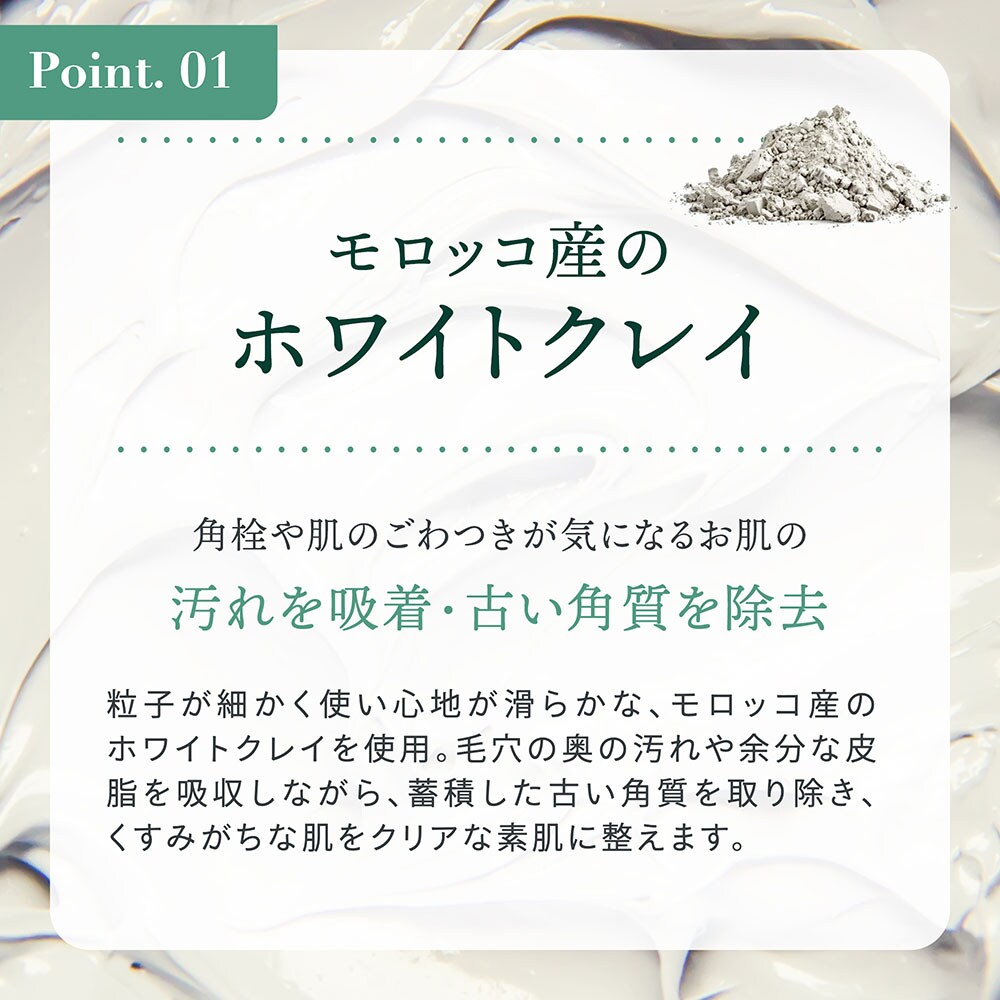 モロッコ産のホワイトクレイがお肌の汚れをしっかり吸着