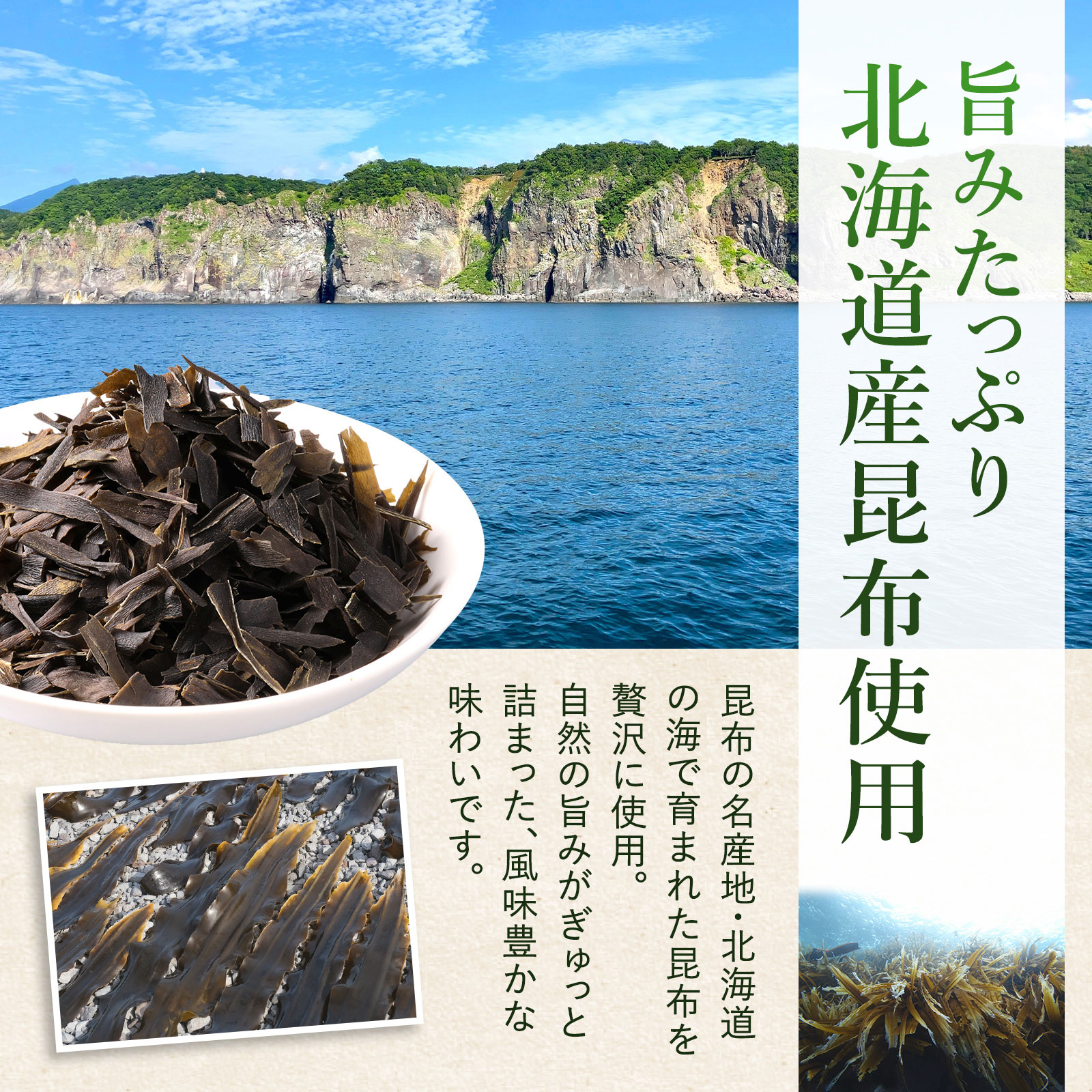 昆布の名産地・北海道の海で育まれた昆布を贅沢に使用。