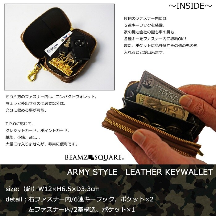 【ブラウン】BEAMZSQUARE 牛革スエード製 迷彩柄 マルチキーウォレット BS-1783BR | 高級感溢れる機能性抜群のマルチキーウォレット