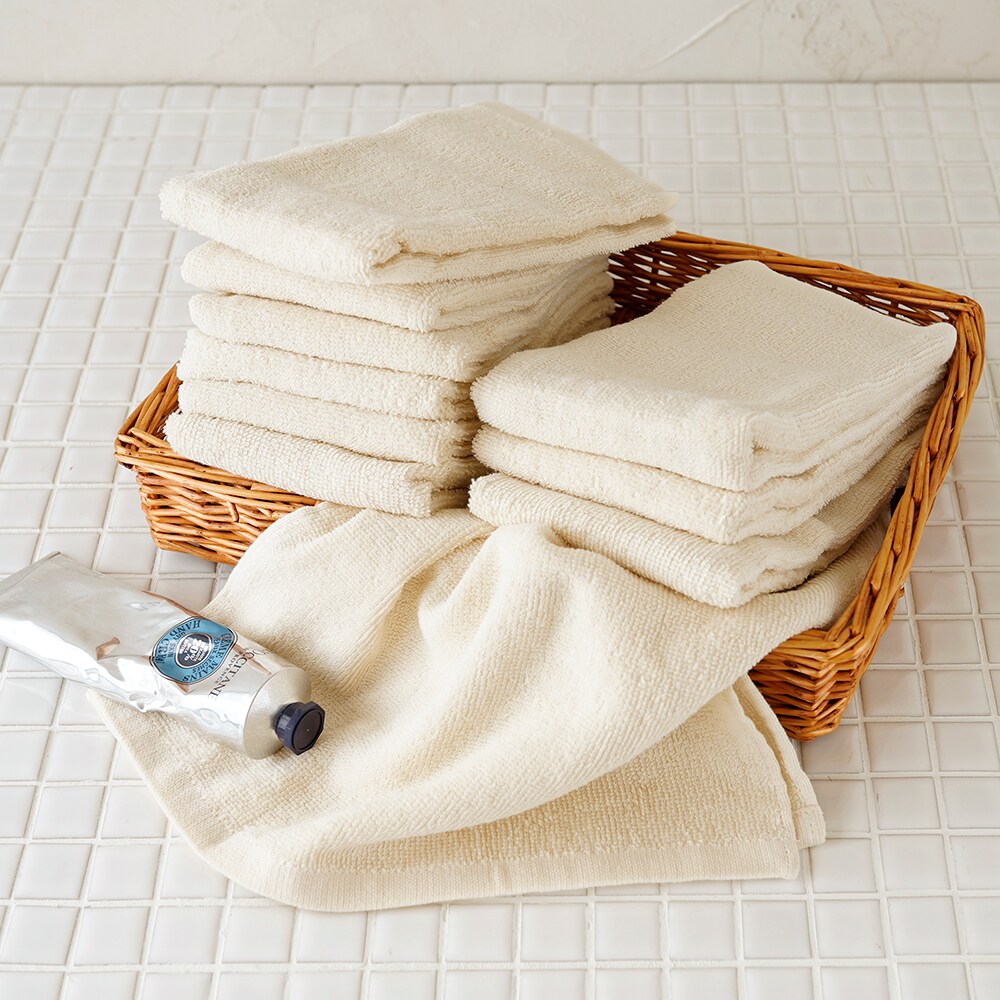 フェイスタオル【アイボリー 40枚セット】 | 綿100パーセントでお肌にやさしい 薄手で丈夫なガムシャタオル