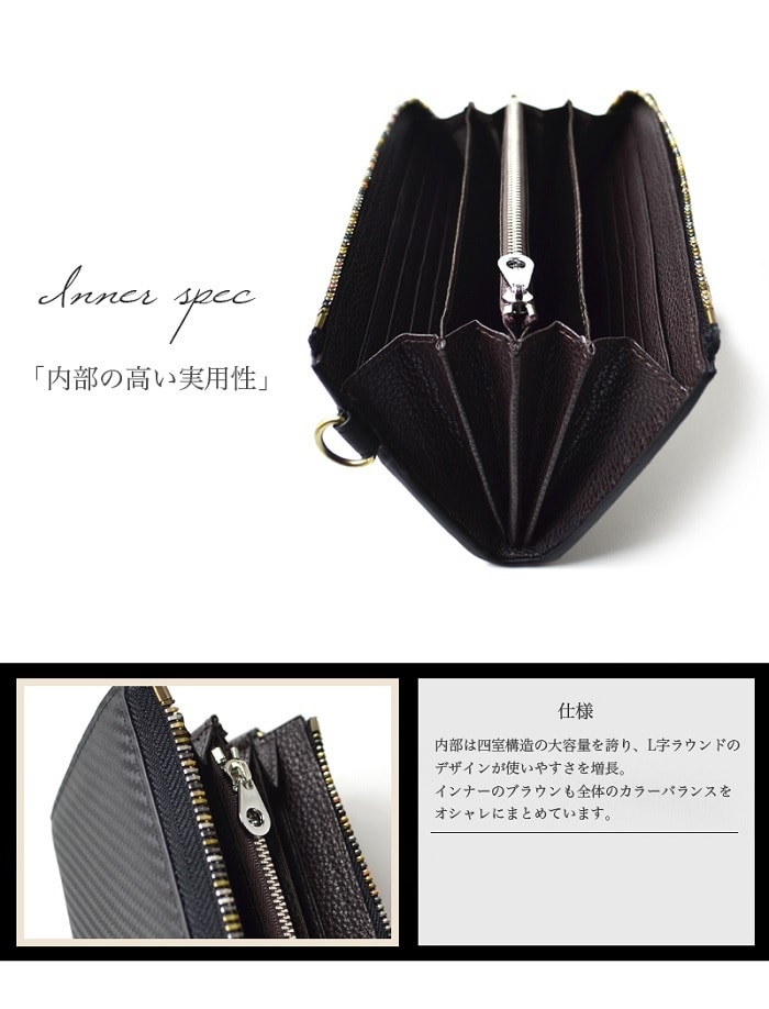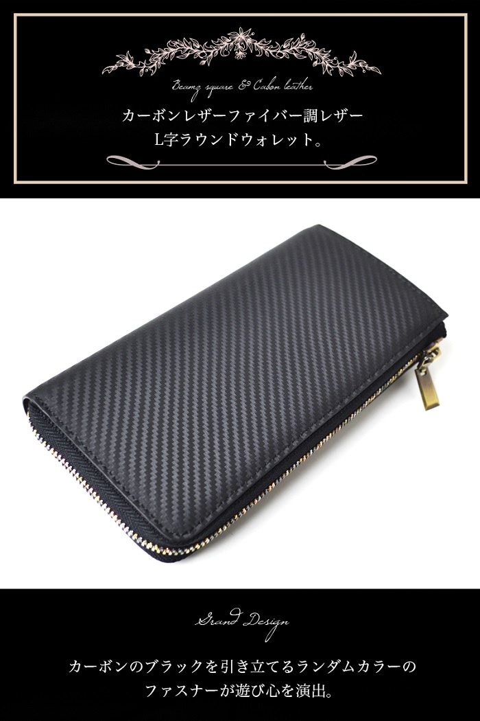 BEAMZ SQUARE カーボンレザー L字ファスナー長財布 BS-22606 | カーボンレザー 大容量 長財布 ランダムカラーファスナー使用