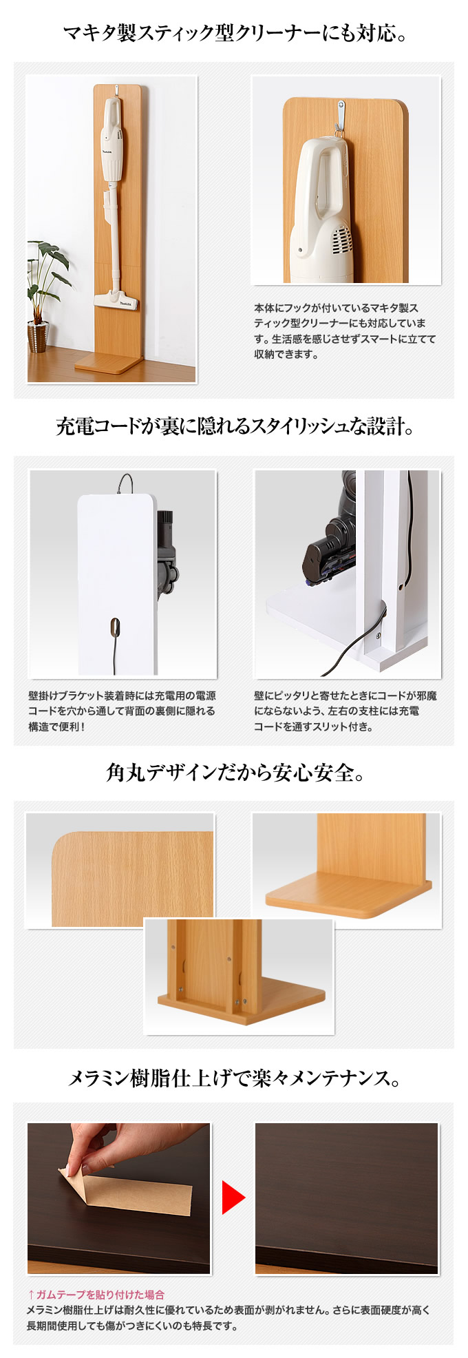 【ナチュラル】スリムクリーナースタンド | ダイソンのコードレス掃除機を立てて充電しながら収納できるスリムタイプのクリーナースタンド