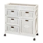 【ホワイト】天然籐ランドリーチェスト スリム 3段 | ラタンを使用したバスまわりの引き出し収納ランドリーラック