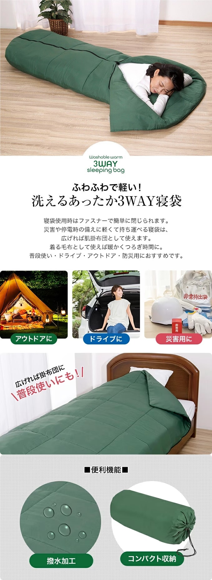 【2枚組】洗えるあったか3WAY寝袋 | 寝袋としても掛布団としても使える!
