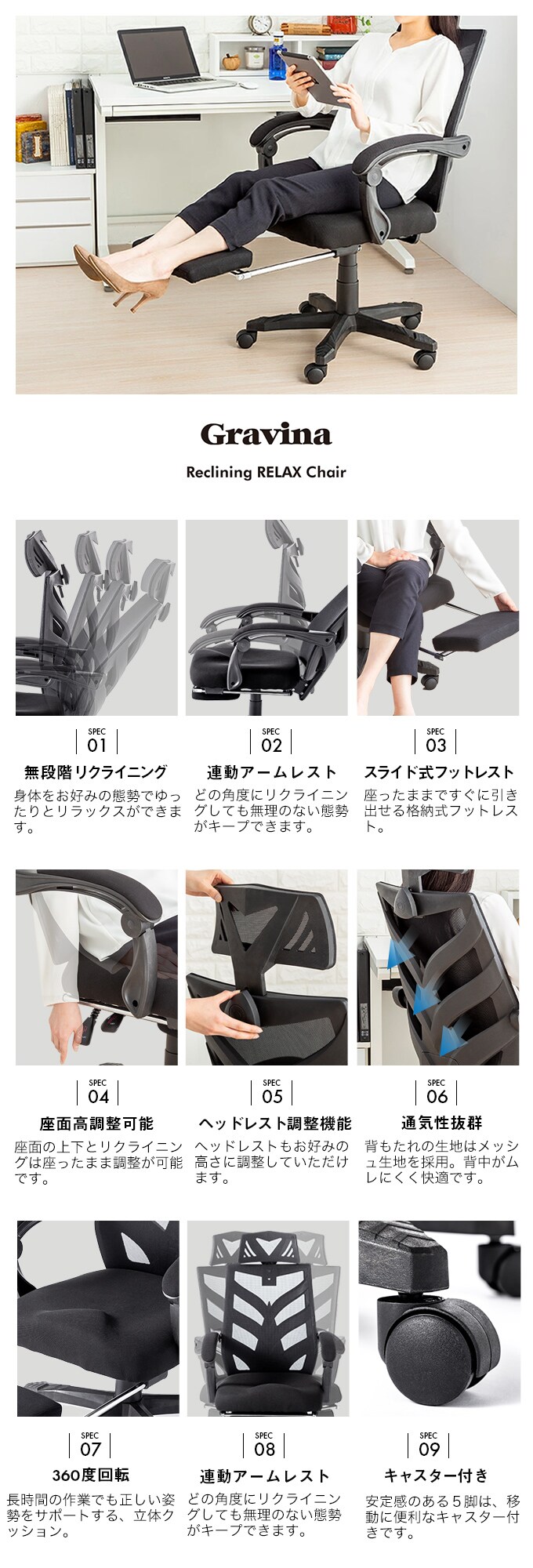 - Gravina リクライニング リラックスチェアー フットレスト付き