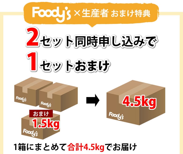 - 1.5kg(約7玉~約20玉前後)2S~3Lサイズ混合
