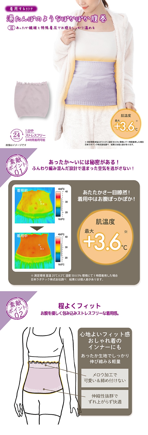 【ラベンダー】湯たんぽみたいなあったか腹巻 | 湯たんぽのようなぽかぽか腹巻