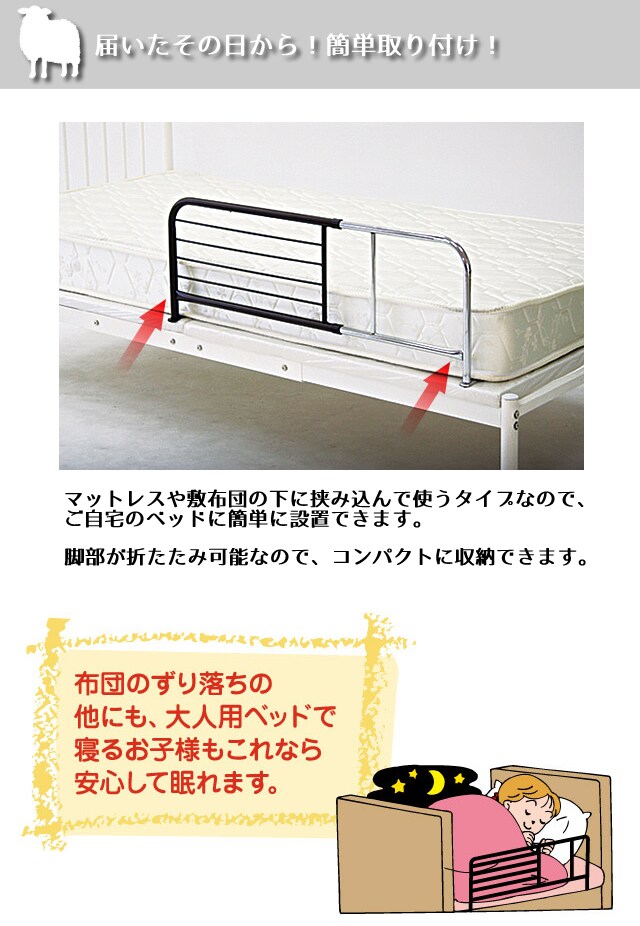 布団のずり落ちの他にも、大人用ベッドで寝るお子様もこれなら安心して眠れます。