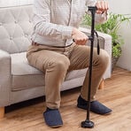 「立つ・歩く・座る」を支える4点接地の自立式ステッキ。段差のある場所やデコボコした道でも安心。4点接地の杖先が地面をしっかり捉え、歩行をサポートします。折りたたみ補助ハンドル付きで立ち上がり楽ちん。暗い所でも安心LEDライト付き。ライトは上下に角度調整可能。万が一の時の安心ブザーも付いています。