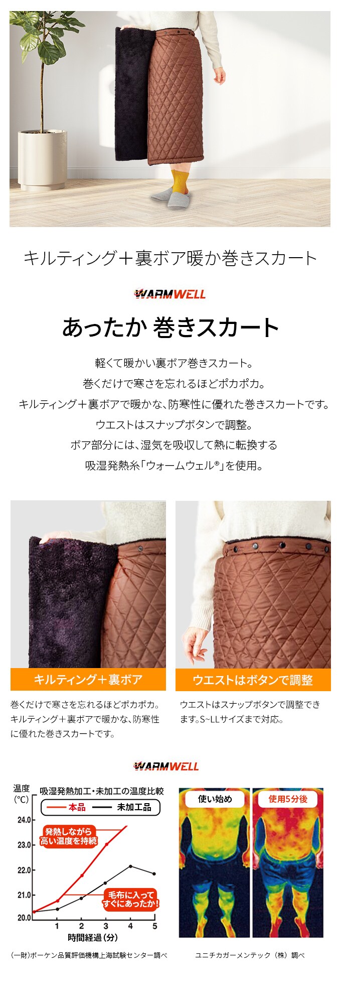 - 吸湿発熱糸ウォームウェル使用 あったか 巻きスカート