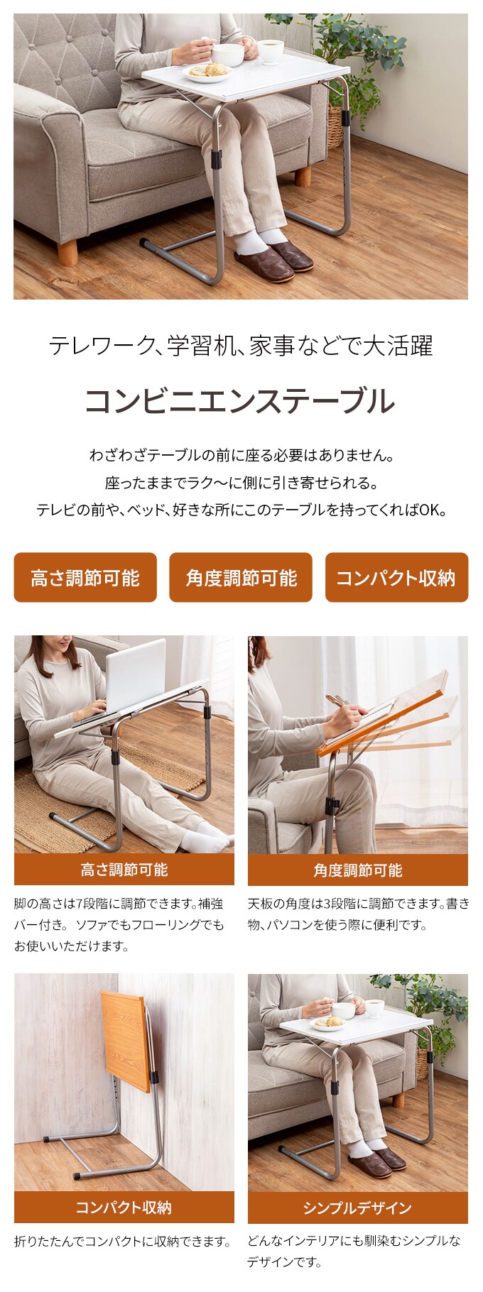 - 【ホワイト】角度調節折りたたみサイドテーブル