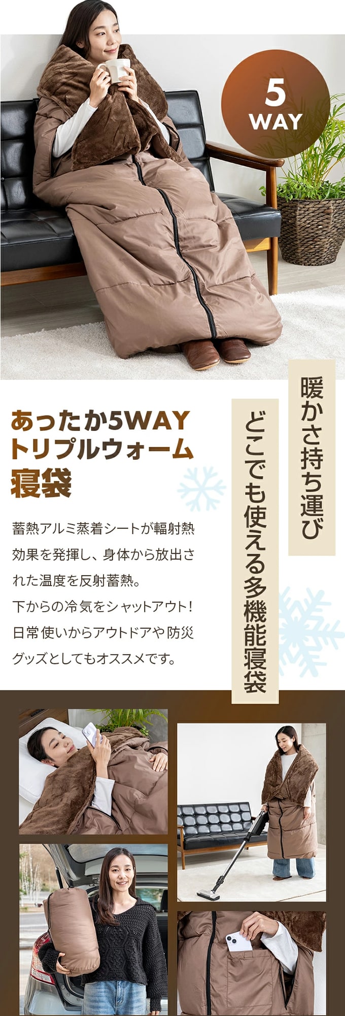 あったか5WAYトリプルウォーム寝袋 | 5WAYとトリプル効果で寒い夜も暖か・快適!丸洗いOK