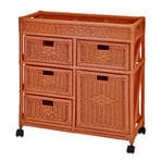 - 【ブラウン】天然籐ランドリーチェスト ワイド 3段
