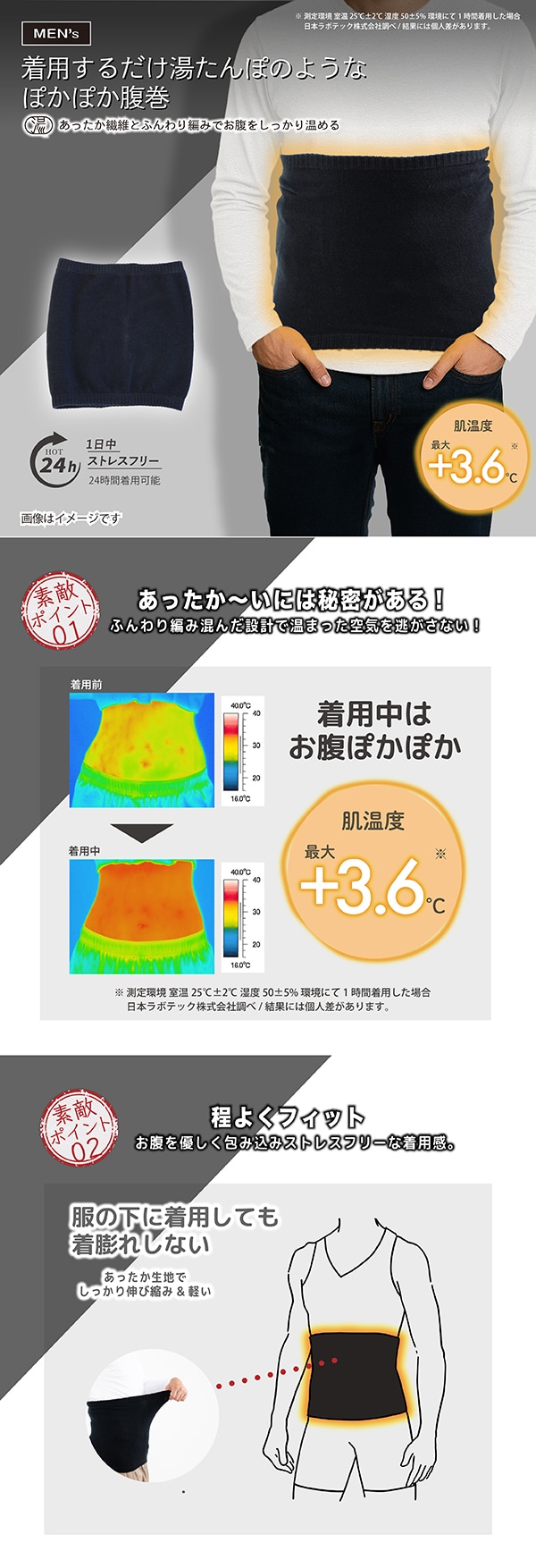 【ブラック】湯たんぽみたいなあったかメンズ腹巻 | 湯たんぽのようなぽかぽか腹巻
