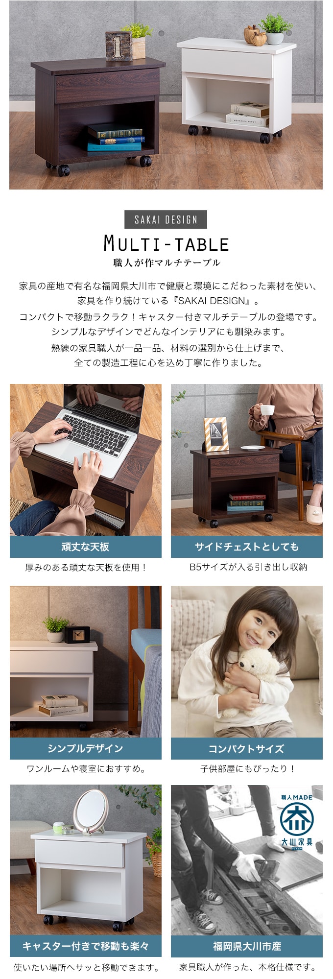 【ホワイト】職人が作るマルチテーブル | 移動に便利なキャスター付き