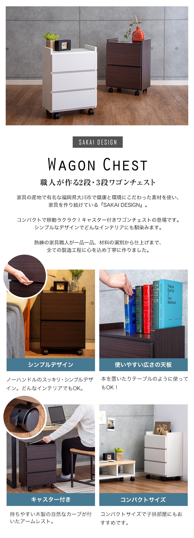 - 【ナチュラルウッド/3段】職人が作るワゴンチェスト