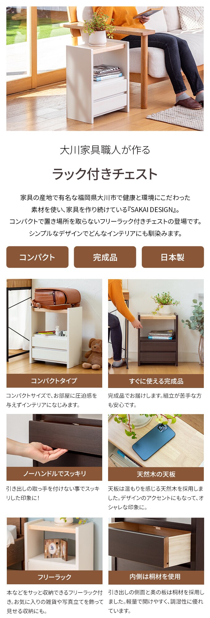 ・原材料/材質/素材:本体:プリント化粧繊維板、桐、天然木(ラバーウッド)
