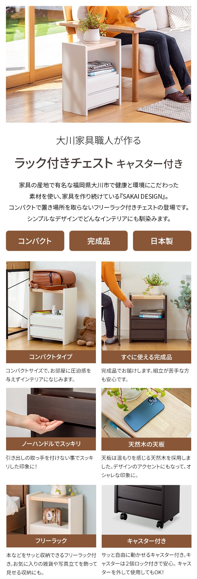 【ホワイト/キャスター付】職人が作るラック付チェスト | フリーラック付きで見せる収納を楽しめる。取り外せるキャスター付き