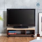 - 【ダークブラウン】天然木リビングワゴン コンセント付