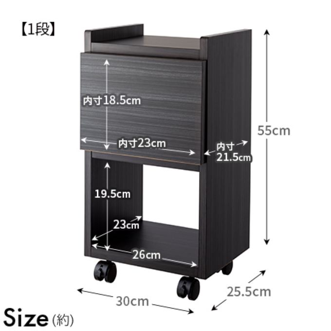 引き出し内寸:1段タイプ:約幅23×奥行21.5cm×高さ18.5cm、2段タイプ:約幅23×奥行21.5cm×高さ10cm