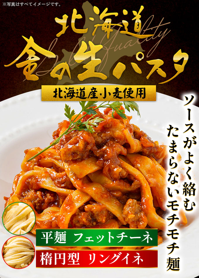 【10食/180g×5袋】北海道 金の生パスタ(リングイネ)【DS02】 | 早ゆで3分!ソースがよく絡むたまらないモチモチ麺!もっちり弾力の楕円型リングイネ◎