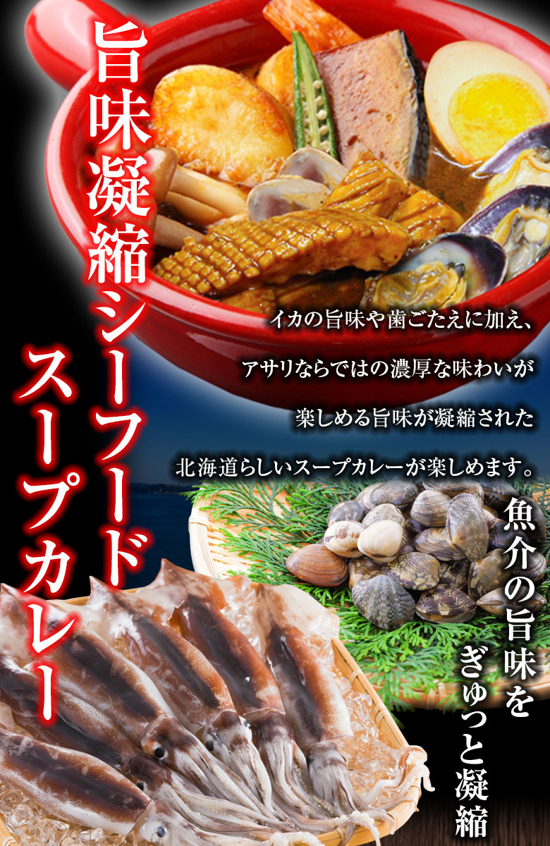 【賞味期限間近】【2食(250g×2袋)】北海道極旨 シーフードスープカレー【B】 | カレーの命「スパイス」に一切の妥協無し!魚介の旨味をぎゅっと凝縮!