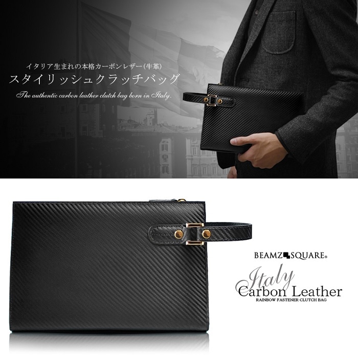 BEAMZSQUARE セカンドバッグ イタリアンカーボンレザー(牛革) BS-45518 ブラック | スタイリッシュなセカンドクラッチバッグ