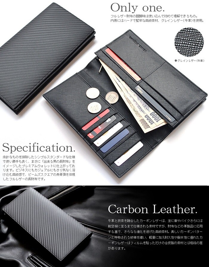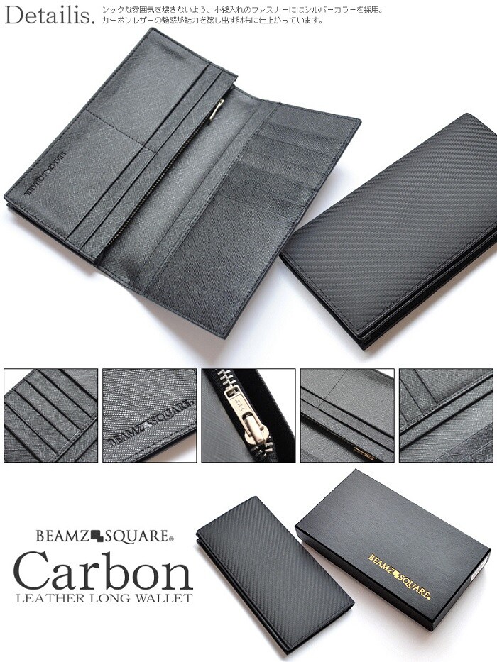 BEAMZSQUARE カーボンレザー×グレインレザー長財布 BS-58517 | カーボンレザーとグレインレザーの融合!豪華なフルレザー製