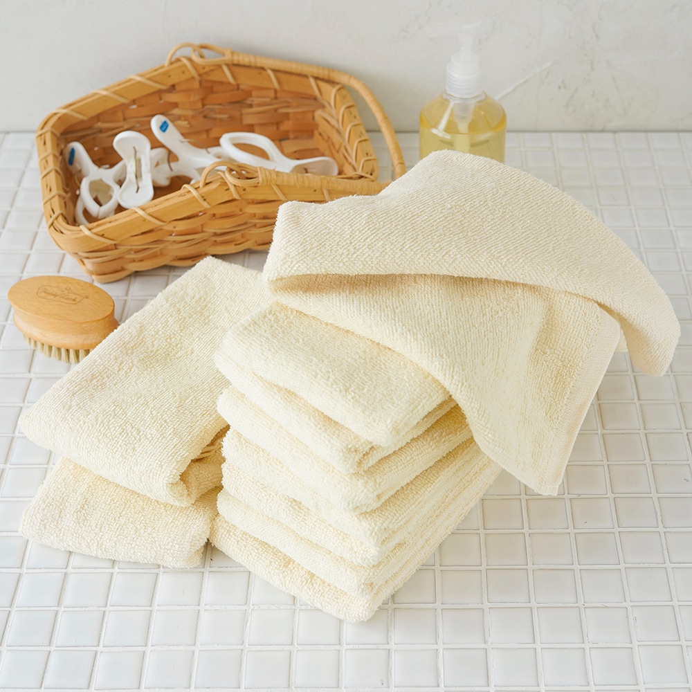 フェイスタオル【パールイエロー 5枚セット】 | 薄手で丈夫なガムシャタオル かさばらず収納コンパクト