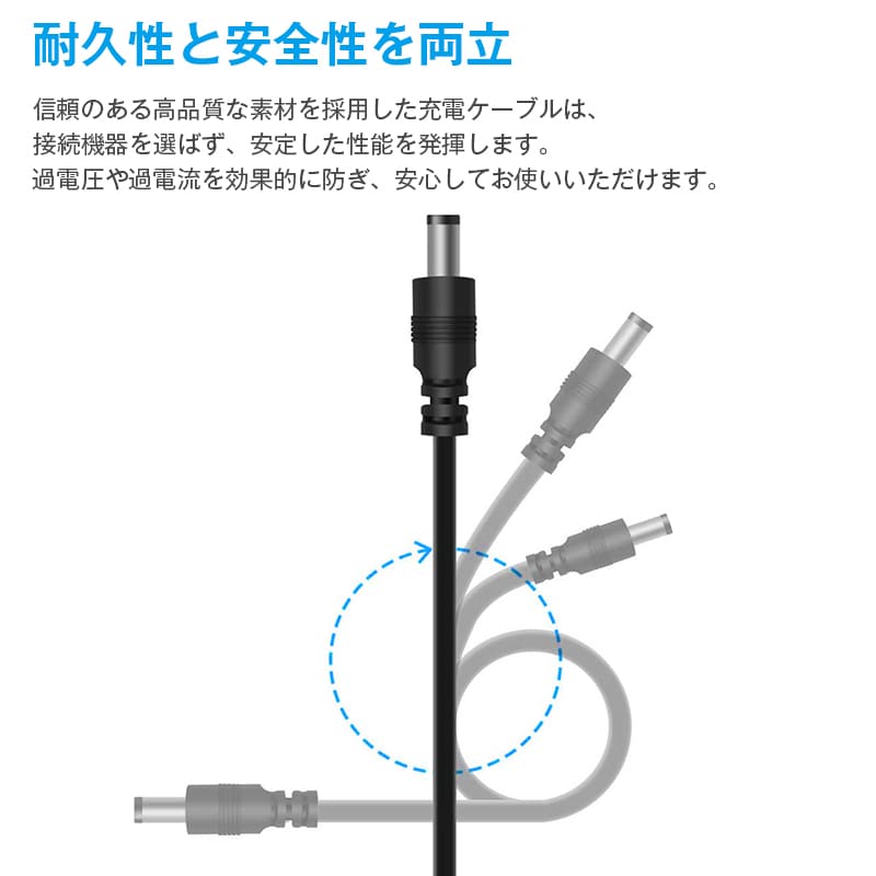 パソコン、掃除機、カメラ、ルーター、スピーカー、モバイルバッテリー、LEDテープライト、空調服用ファンなど、簡単に充電できます。
