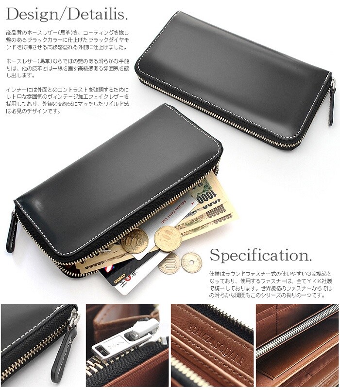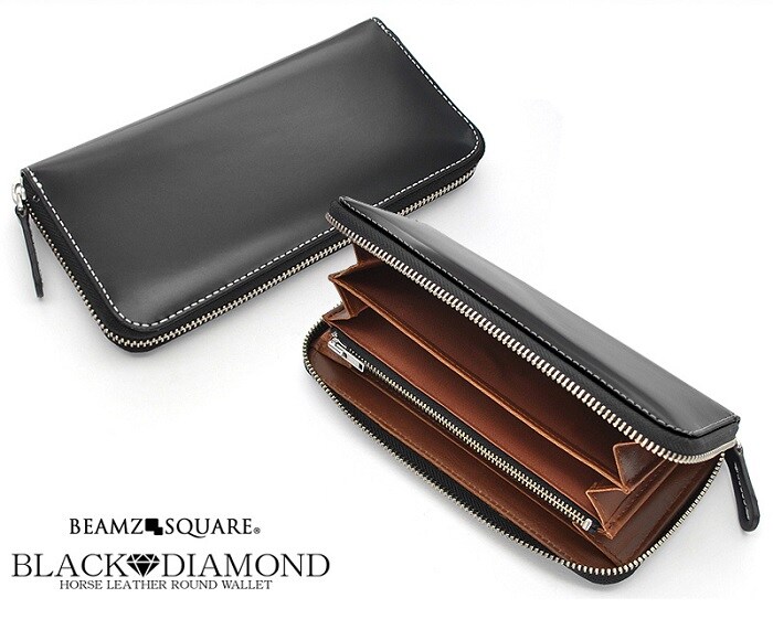 BEAMZSQUARE ブラックダイヤ 馬革 ラウンドファスナー長財布 BZSQ-1730 ブラック | シンプルと高級感の融合!ブラックダイヤシリーズ
