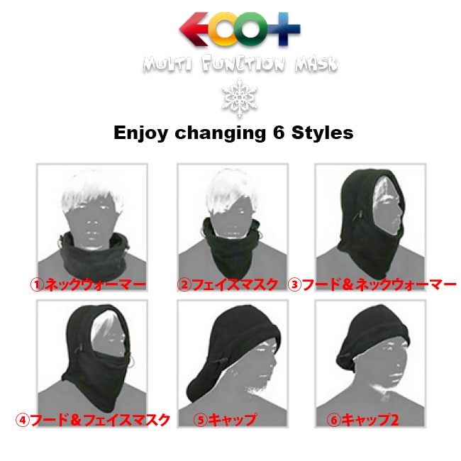 【グレー】EOO+イオプラス 6WAY・ファンクション・マスク | 厚手起毛生地を使用、すっぽりかぶって、目の下までしっかり防寒